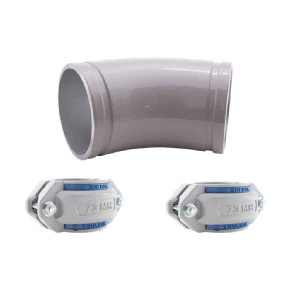 TRULINK UNION ELBOW 45 DEG. 90MM W/COUPLINGS